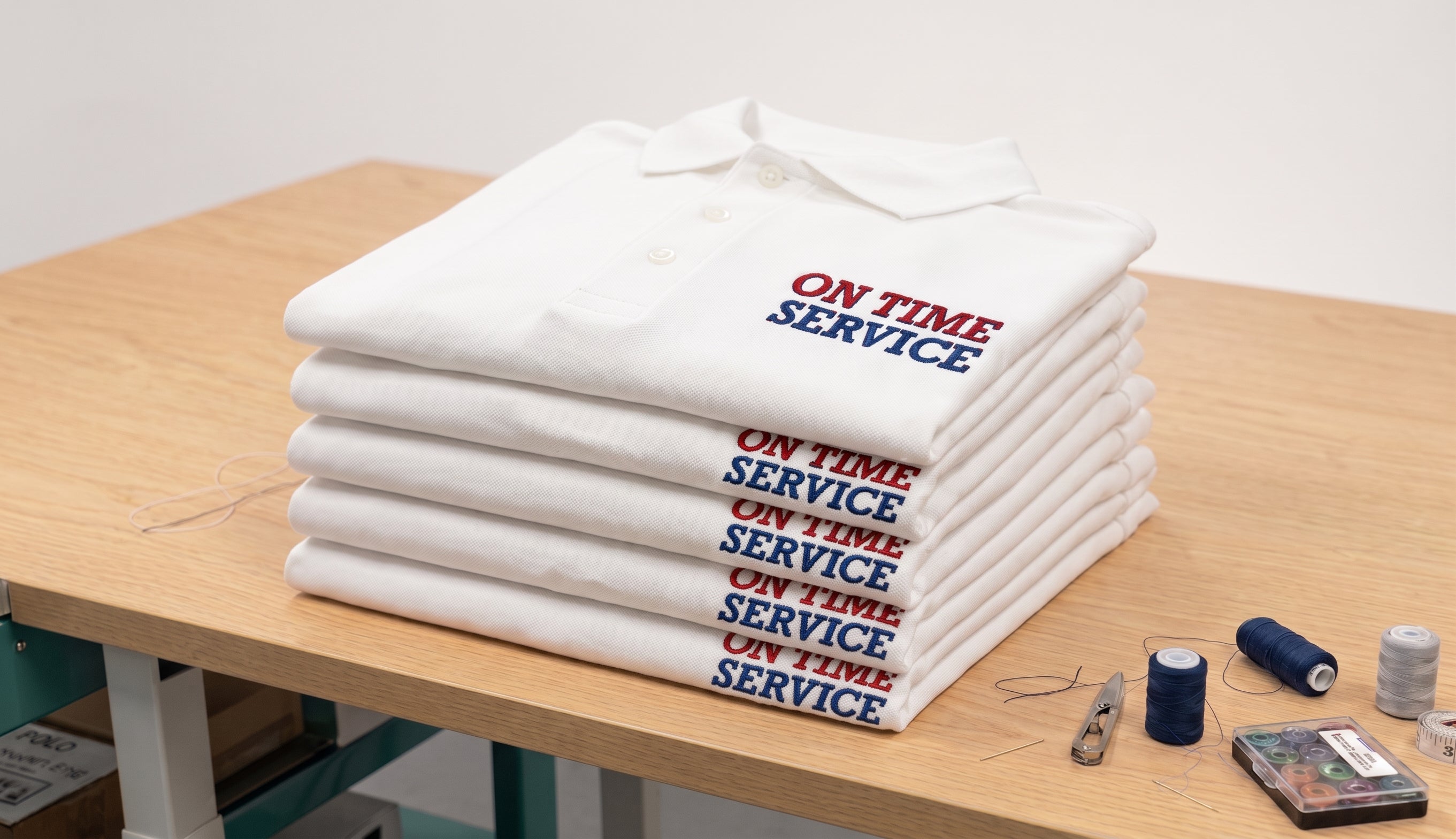 We digitize your logo for embroidery and send you a photo proof on the actual garment before a single stitch goes down.
