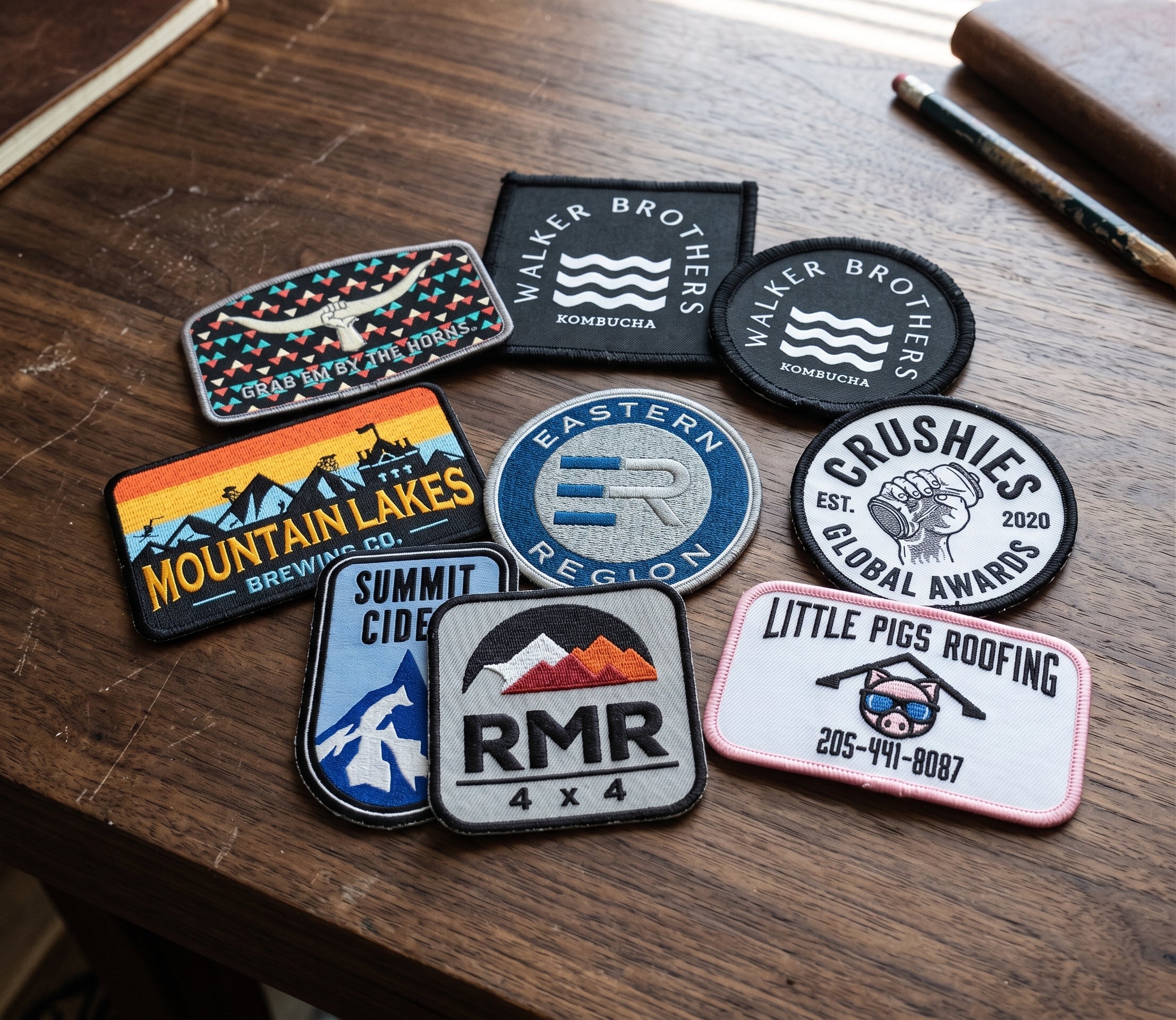 Woven, embroidered, and twill patches for uniforms, jackets, and promotional use. Iron-on, sew-on, or Velcro backing.